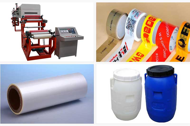 從原材料(BOPP薄膜,水性壓敏膠,紙芯)在同一臺機器上制作印刷,透明度和顏色不同尺寸的膠帶。